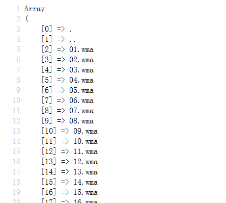 <?php $dir1 = './dir1/';//读取文件夹名称(避免使用中文) $filearr = scandir($dir1);//读取文件夹 unset($filearr[0]);//去除多余的元素 unset($filearr[1]); $filearr = array_values($filearr);//使数组从0开始,以1递增 print_r($filearr);