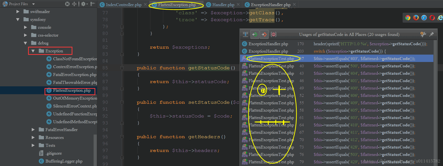 FlattenException类来获得请求状态码的,根据提供的测试类FlattenExceptionTest,从而得出了上述的代码,建议可以阅读下源代码以做比较