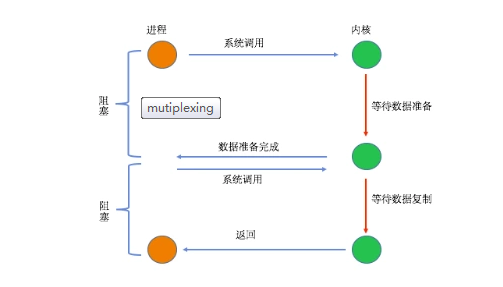 I/O执行的两个阶段都是用户进程都是阻塞的,但是两个阶段是独立的,在一次完整的I/O操作中,该用户进程是发起了两次系统调用。和阻塞I/O不同的是第一段可以等待多个描述符就绪