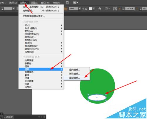 2、然后选择椭圆工具,画一个椭圆的图形,选中椭圆到效果—模糊—高斯模糊,
