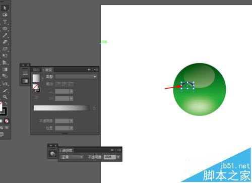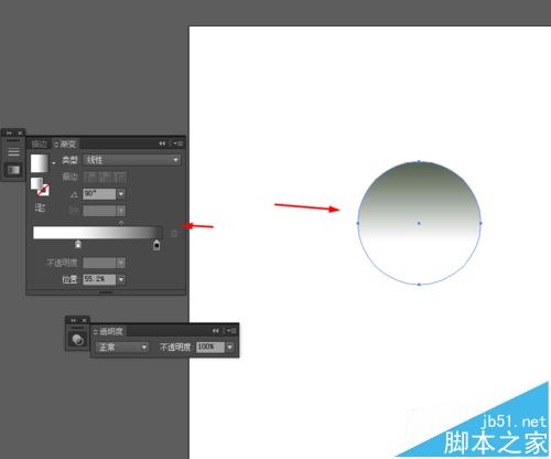 3、复制圆形,并添加渐变颜色,再到窗口—透明度—混合模式改为正片叠底,如图所示