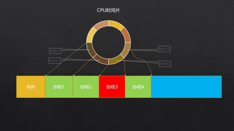 我们目的是为了均衡调度每个协程的CPU时间,比如协程3需要比较长的执行时间,我们必须把协程3的CPU时间主动中断,而不依赖IO事件,使得每个协程得到平均的执行时间。