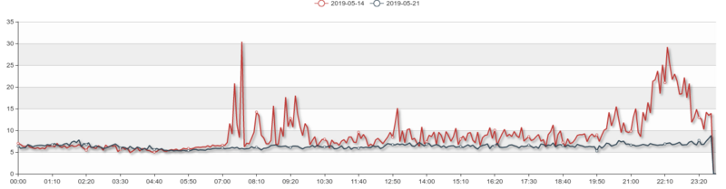 下图是我们生产环境一个RPC接口的调用端统计数据对比,客户端等待超时时间为2s,超时则统计为错误。