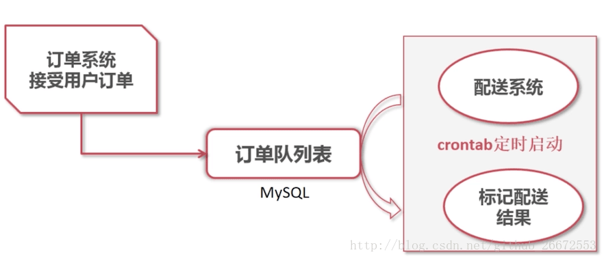 所以我们需要把这2个系统分开,通过一个中间的队列表来实现这2个系统的沟通。