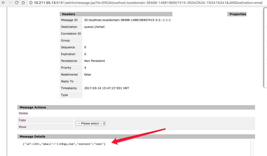 我们在ActiveMQ自带的管理后台查看,确实有一个名为”email”的队列。