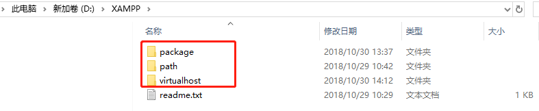 2.1 首先我在D盘创建了一个文件夹XMAPP,然后在XMAPP创建了三个文件夹。