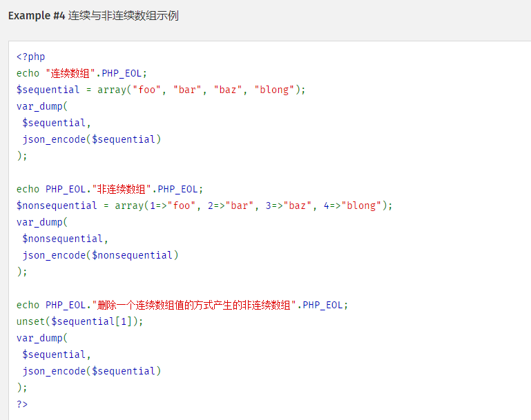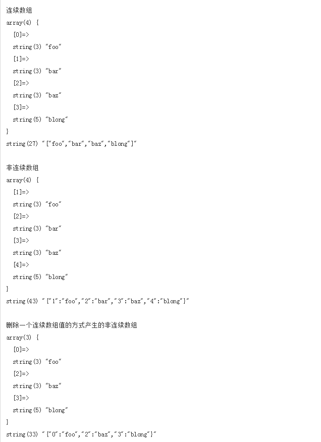 所以对一个连续数组执行unset后,会变成非连续数组,对非连续数组执行json_encode会变成对象。