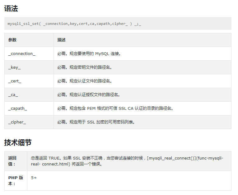以上就是舒服玉米最近收集整理的关于PHP的mysqli_ssl_set()函数讲解的全部内容,更多相关PHP内容请搜索靠谱客的其他文章。