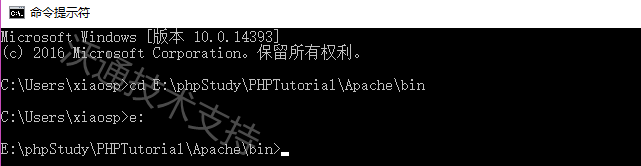 在服务器上打开dos命令行(cmd),通过cd命令进入apache的bin目录,如E:phpStudyPHPTutorialApachebin,输入httpd -t命令,查看配置是否正常,具体如下图:
