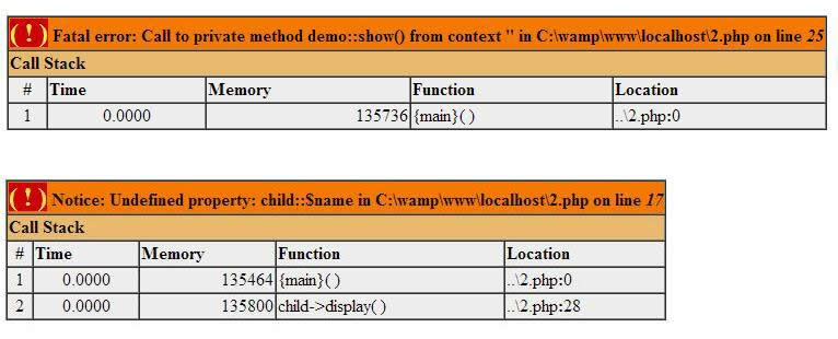 // 出现异常---未捕获错误:调用私有方法demo::show()