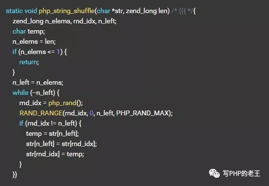 以上就是美好雪碧最近收集整理的关于PHP内部实现打乱字符串顺序函数str_shuffle的方法的全部内容,更多相关PHP内部实现打乱字符串顺序函数str_shuffle内容请搜索靠谱客的其他文章。