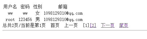 echo "<tr><td>用户名</td><td>密码</td><td>性别</td><td>邮箱</td></tr>";