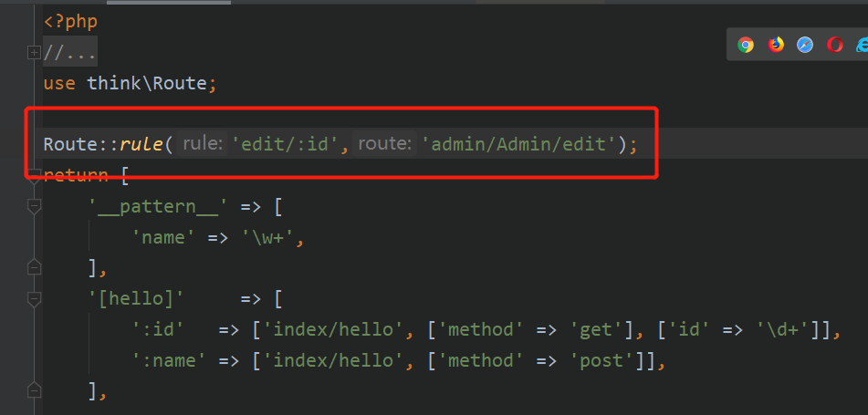 Route::rule([ '路由规则1'=>'路由地址和参数', '路由规则2'=>['路由地址和参数','路由参数(数组)','变量规则(数组)'] ... ],'','请求类型','匹配参数(数组)','变量规则');