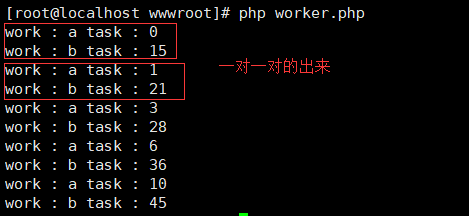 echo "work : {$this->worker->getName()} task : {$total} n";