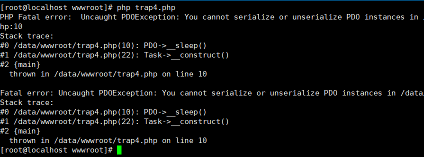//注意这里会报错,不能对PDO实例进行序列化或反序列化