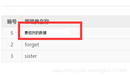 从上述代码中我们可以看到一个存放用户名的span标签,还有一个默认为隐藏的input框,用来存放用户名,接下来我们要做的就是:通过相应的点击事件,实现即点即改;在修改数据时,我们尽量要根据他的唯一字段id进行修改,避免出错: