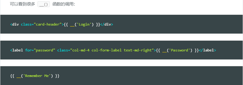 这是 Laravel 提供的本地化特性,使用 __() 函数来辅助实现。按照约定,本地化文件存储在 resources/lang 文件夹中,为 JSON 格式。在 config/app.php 文件中,我们设置了: