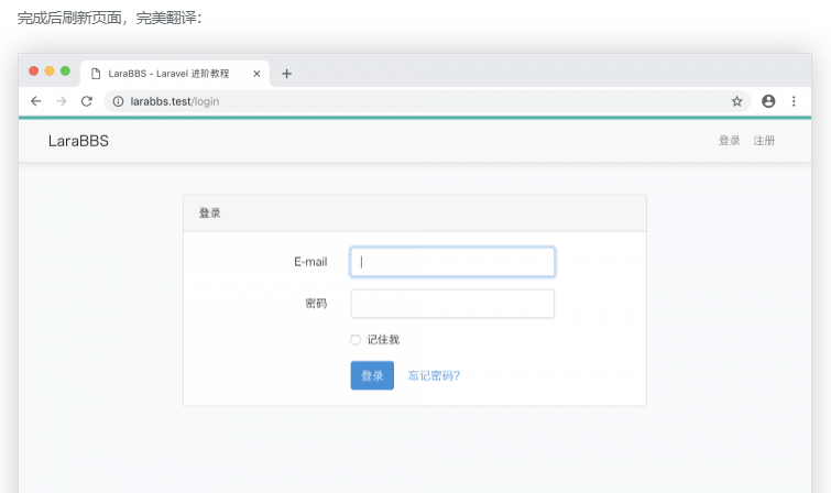 laravel 使用make:auth生成用户认证,登录表单是英文版本的,打开模板文件(resources/views/auth/login.blade.php),此模板文件是我们刚刚使用 make:auth 命令生成的