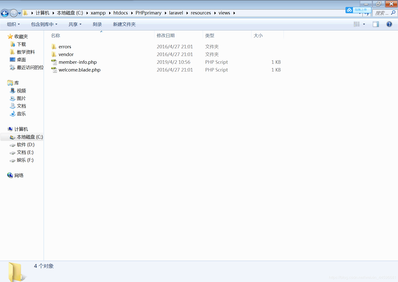 首先,视图他是存放在resources目录里的view目录,所以我们在这个目录下创建一个新的文件命名为member-info.php