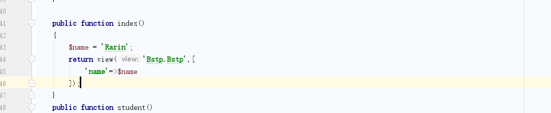 当然,这个变量肯定要和输出视图放置在一个方法里,然后,我们在Bstp.blade.php(Bstp目录下的)填入