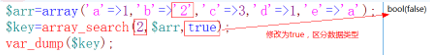 array_search默认情况下,是不区分数据类型的,如果想让其区分数据类型,将array_search的第三个参数修改为true即可。