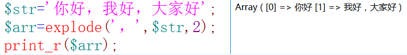 语法: explode(string,$str[,num])
