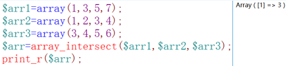 语法 :array_intersect($arr1,$arr2[,$arr3..$arrn]);