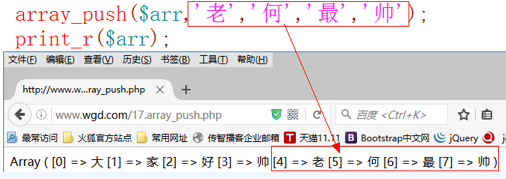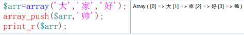 语法:array_push($arr,$value[,$value2..$valuen])