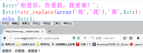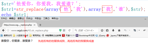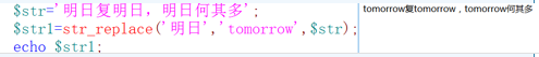语法 :str_replace(替换前字符,替换后的字符,$str)