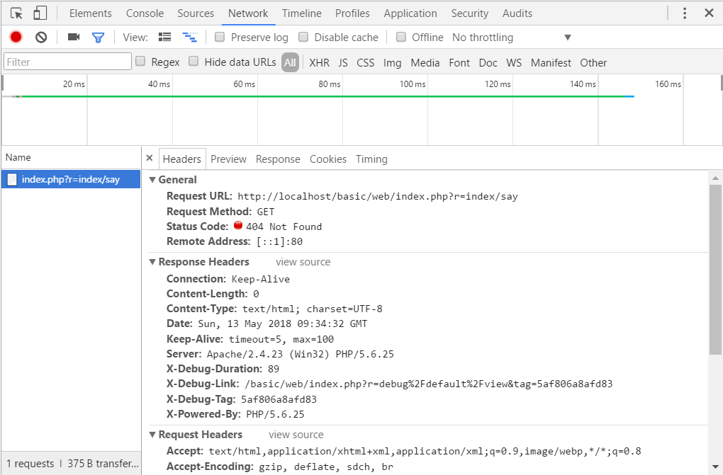 这个时候我们再来访问时,会出现404的错误,打开开发者调试工具,在network选项下面也是可以看到404的状态码了