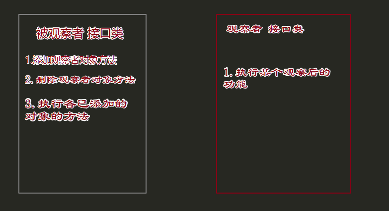 好了,我们现在通过上面的继承就能明白了,观察者就是定义各种功能的对象(这些对象就是:比如给第一次登录的用户发红包,给用户最新的10条文章推送,给非vip用户推送10条需要注册才能打开的视频诱导用户开通vip。。。。),被观察者对象要实现的就是 将添加(注册)的观察者对象存储起来并逐个通知执行观察者各自的功能,