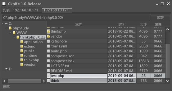 2、使用phpstudy搭建环境,解压下载的Thinkphp5.0.22到网站目录下,浏览器访问http://192.168.10.171/thinkphp5.0.22/public