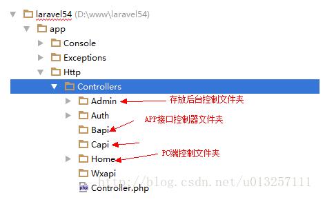 第一步:添加apphttpControllers文件夹里面创建我们要存放前端和后端或者接口的文件夹