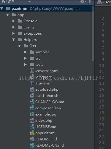 如图所示,其实我也不知道该放哪里合适,不过laravel的好处是命名空间比较好使,所以我直接把SDK重命名为OSS,然后目录路径为:AppHelpersOSS