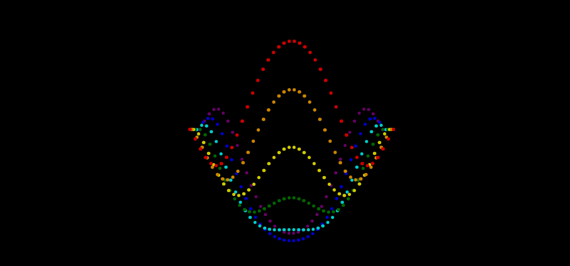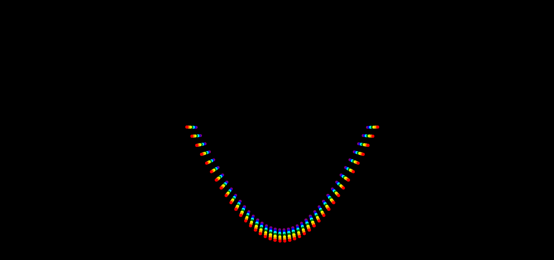 创建 7 个不同颜色的(这里直接选了彩虹色)列表,每个列表有 40 个子元素,每个子元素是一个小圆点