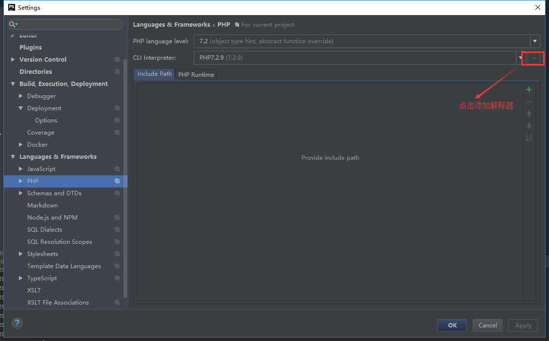 2)File - setting - Languages & Frameworks,配置 PHP 版本、interpreter信息;