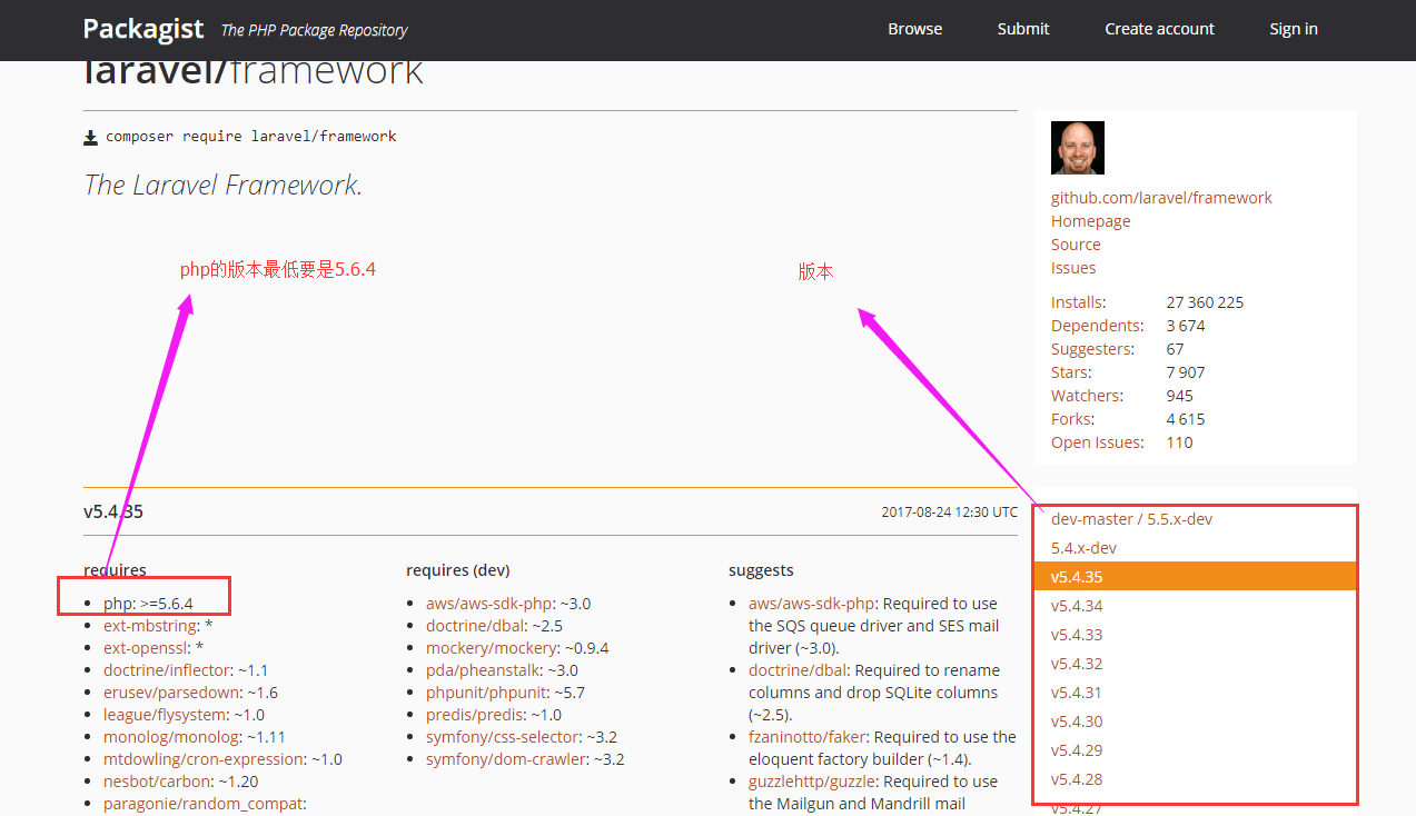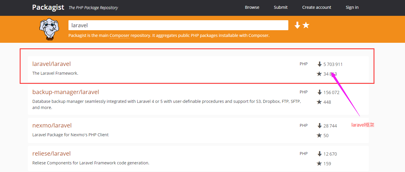 1. 在packagist.org 上 查询 laravel 的相关信息