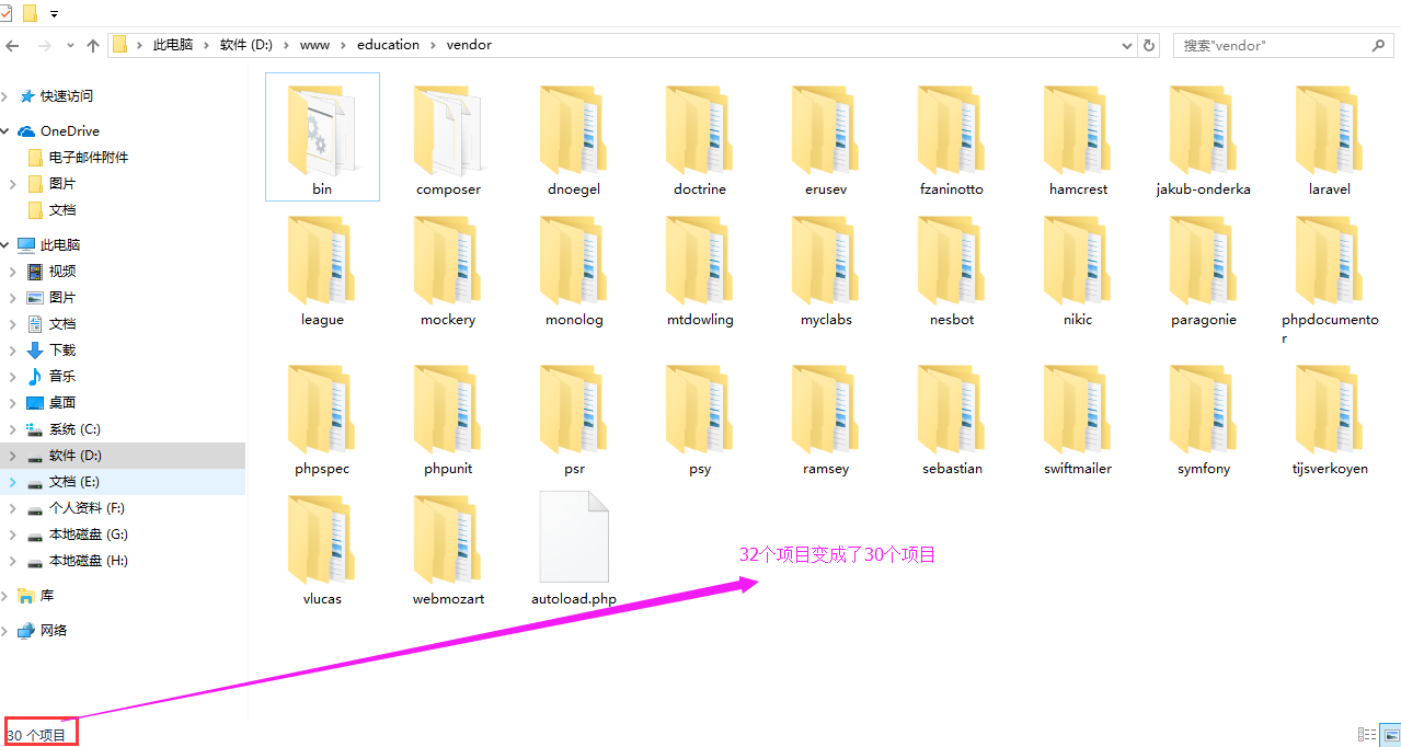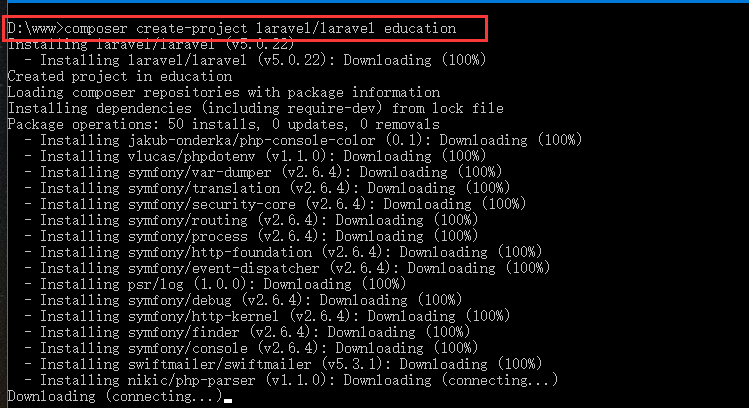 例如我们要在D盘的www目录下,创建一个laravel项目education