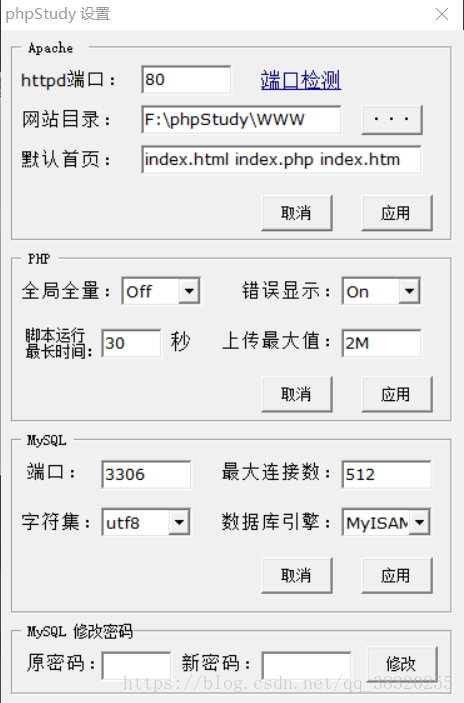 我们查看看一下其他选项菜单下的phpstudy设置下的端口常规设置