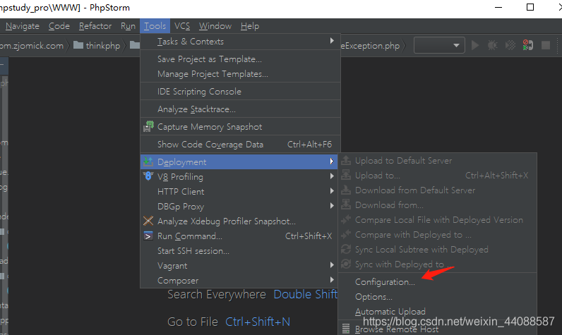 Step1 打开phpstorm Tools->Deployment->Configuration