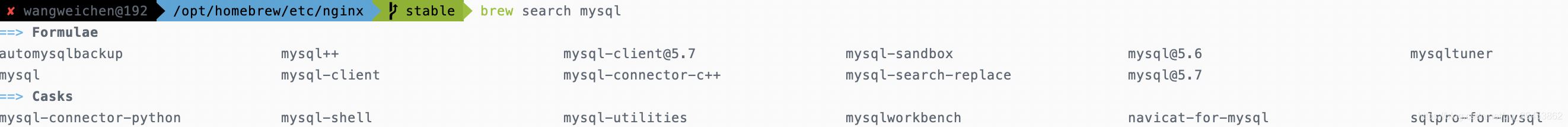 首先搜索是否包含想要安装的 mysql 版本, 这里以 mysql@5.7 为例