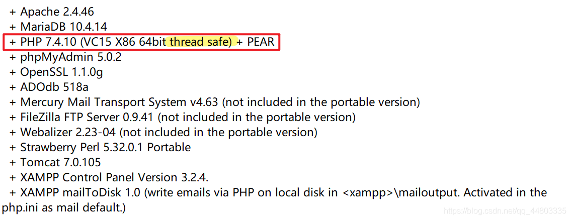 下载什么PHP版本,可以在XAMPP中的README看到