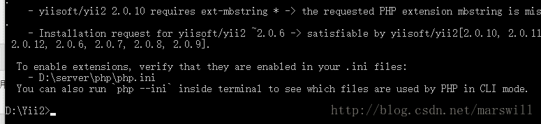 这个错误也是经常会犯的错误。是因为composer安装yii2时需要mbstring这个处理多字节字符串的扩展。开启方法和上一个问题一样,删除php_mbstring.dll前的分号