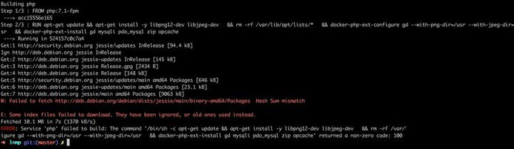 PHP这个镜像中软件是使用的Debian的源,因为众所周知的缘故会导致镜像安装不成功,如图所示: