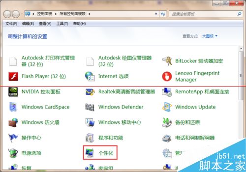 1、首先在电脑上打开【控制面板】选项,可通过左下角的开始菜单进入控制面板选项,在控制面板界面可以看到【个性化】选项,如下图所示。