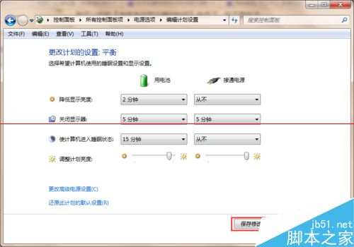 6、分别对两种方式进行设置,设置完成后点击【保存修改】,设置即可生效,当到达指定时间后电脑会自动关闭屏幕。