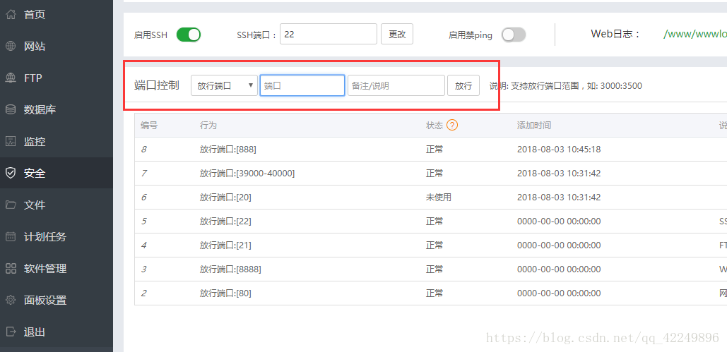 1、先检查宝塔面板里面的888端口是否开放?