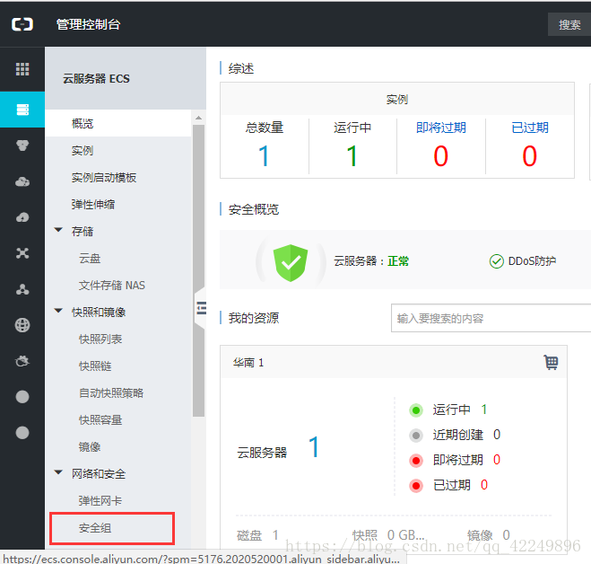 如果开放了,在去阿里云控制台的安全组检查是否开放: