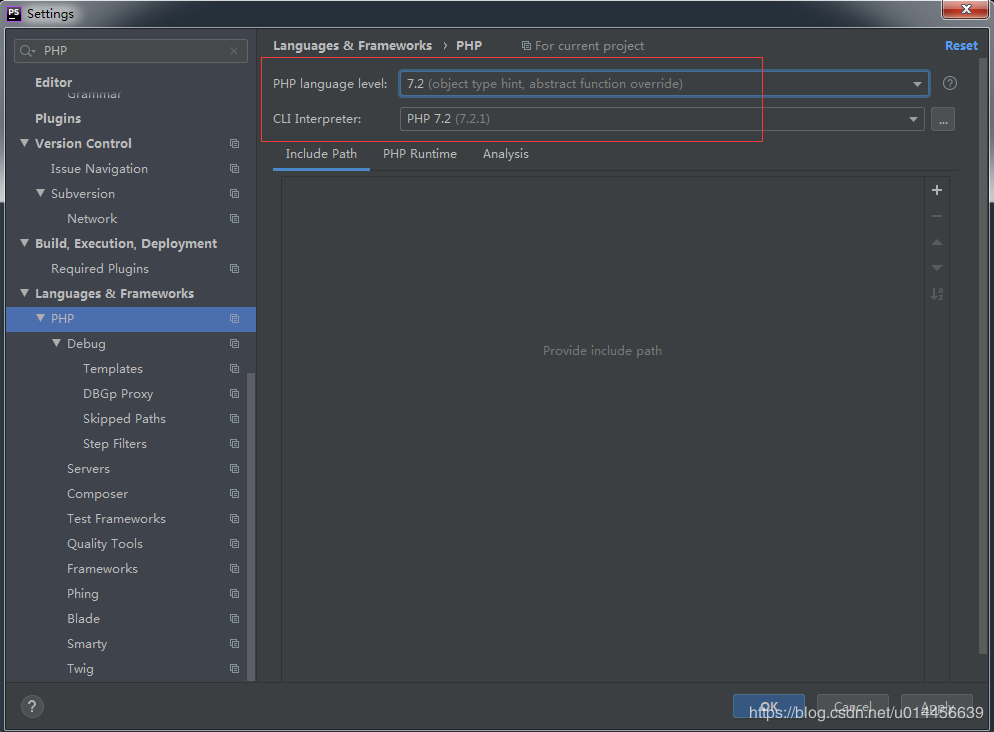 2.1.1 从 File > Settings,输入 PHP,红框处的就是我们需要配置的地方