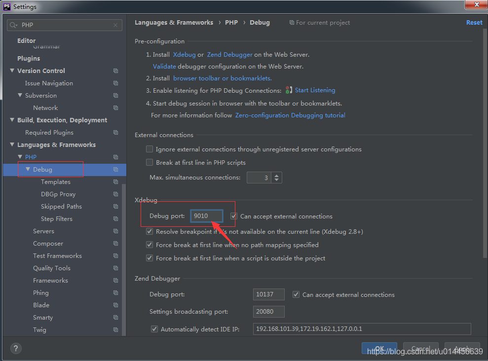2.1.3 Debug port 这边的值用之前在 php.ini 里面新增的值,其它不动